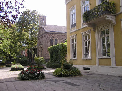 Dahinter die Rigal´sche Kapelle, Kurfürstenallee 11 Sie wurde 1856 durch den Bonner Baumeister Christian van der Emden errichtet und am 1. Juli 1858 geweiht. |