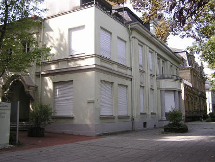 am Haus Gleichzeitig wurde das Haus Kurfürstenallee 4 von Karl vom Rath so beschädigt das ein Wiederaufbau nicht erfolgte. Heute ist dort ein Zugang zum Redoutenpark. Foto aus GoHbl